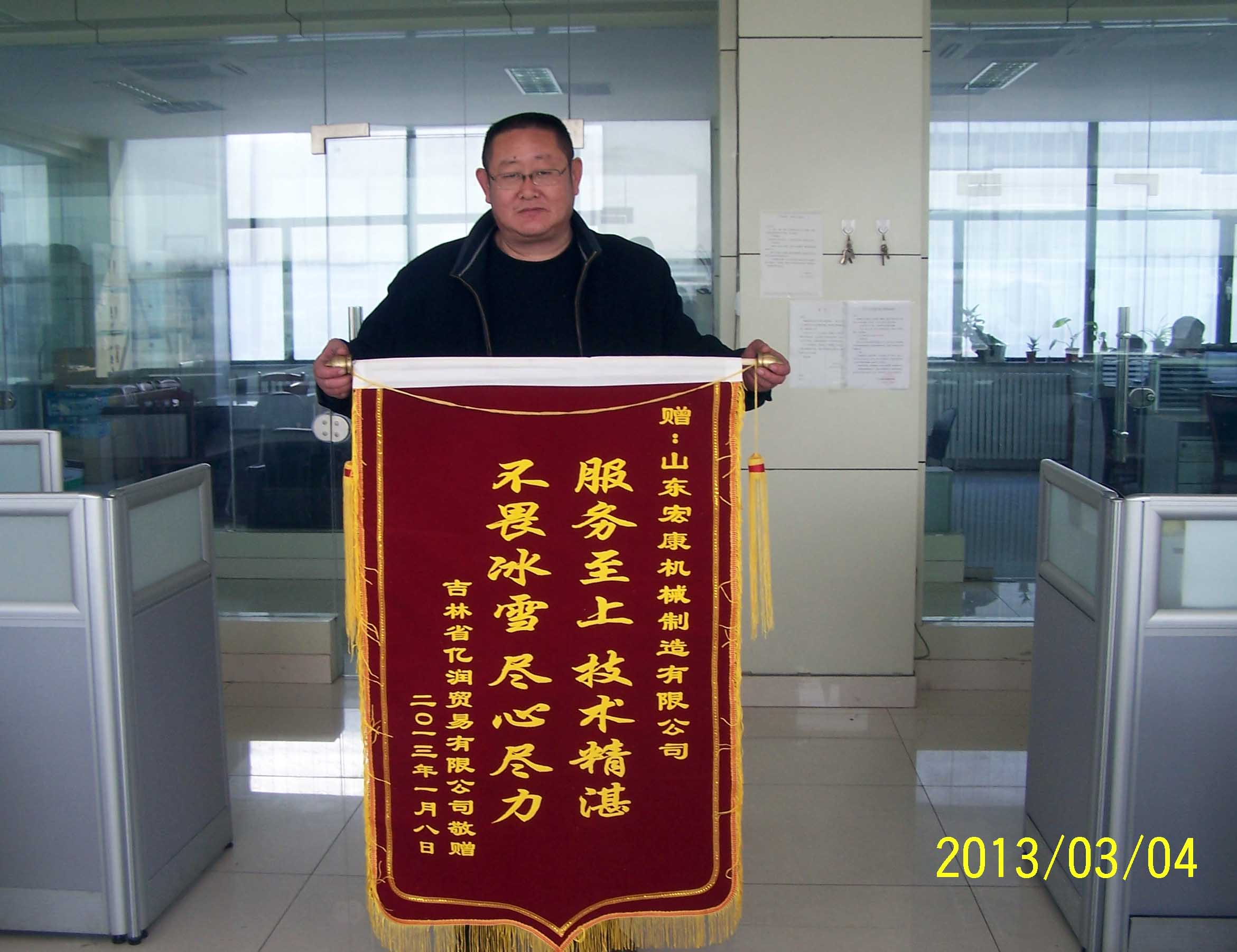 新年伊始,集團公司迎來了一份不同尋常的殊榮:吉林省億潤貿(mào)易有限公司寄來了一面書有“服務(wù)至上,技術(shù)精湛,不畏冰雪,盡心盡力” 大字的錦旗,對銷售公司安裝服務(wù)人員提出了高度的贊揚。紅布黃字,看似普普通通的一面錦旗,背后卻是集團公司售后團隊?wèi)?zhàn)嚴(yán)寒斗冰雪、哪里需要就哪里去的堅持與付出精神的真實寫照。