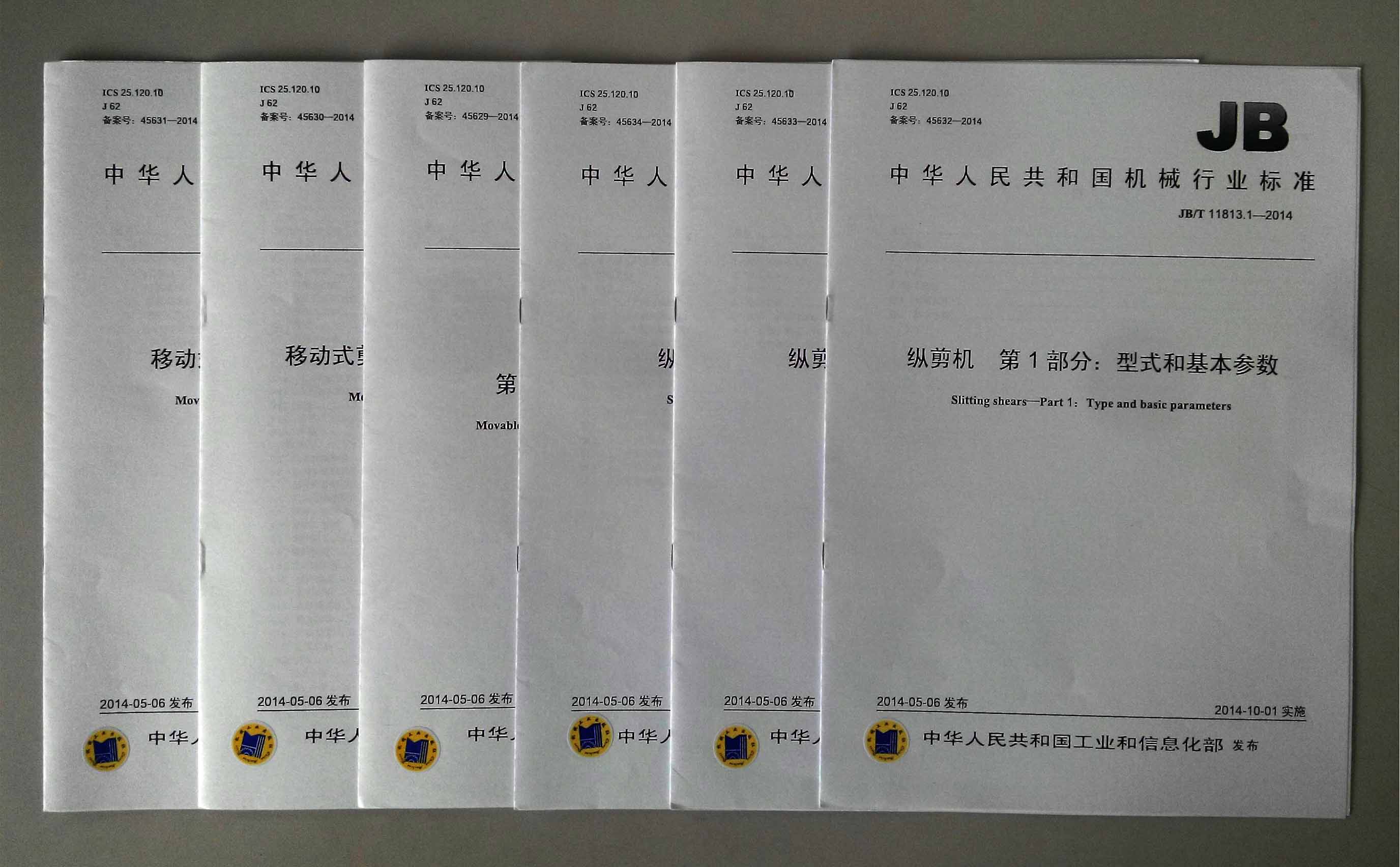 近期,集團公司負責制訂的有關縱剪機、移動剪板機的6項國家行業(yè)標準由工信部頒布,2014年10月1日正式實施。