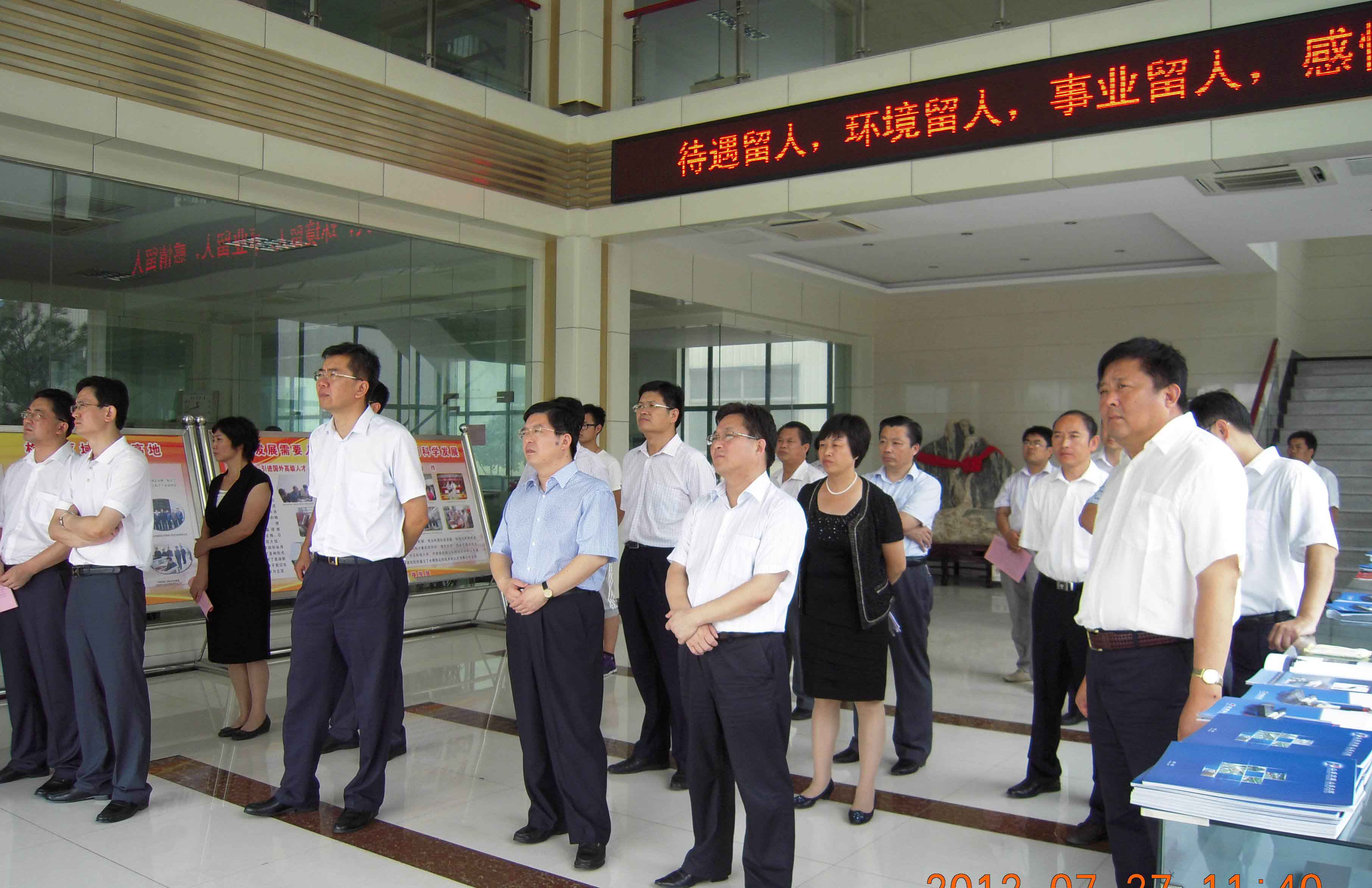7月27日,市委副書記丁毅,市委常委、組織部長(zhǎng)陳平,副市長(zhǎng)徐恩虎帶領(lǐng)泰安市人才工作觀摩推進(jìn)會(huì)與會(huì)人員來(lái)集團(tuán)檢查人才工作情況。區(qū)委書記、區(qū)人大常委會(huì)主任王永征,區(qū)委常委、組織部長(zhǎng)蔡麗霞,區(qū)委常委、辦公室主任劉琳等領(lǐng)導(dǎo)陪同活動(dòng)。集團(tuán)董事長(zhǎng)、總經(jīng)理康鳳明向與會(huì)領(lǐng)導(dǎo)匯報(bào)工作,常務(wù)副總經(jīng)理潘憲平、副總經(jīng)理聶化濤等領(lǐng)導(dǎo)陪同活動(dòng)。